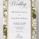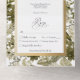 MIT ODER OHNE QR-CODE ODER ABENDESWÄHLUNGSOPTIONEN. Dieses Design zeichnet sich durch einen Hintergrund verschiedener botanischer Vegetation aus. Der weiße Textbereich ist in der Goldfolie der Imitate gerahmt. Ein Monogramm mit dem ersten Auftakt der Braut und des Bräutigams auf der Außentafel vervollständigt es. Erstellt von der einfachen Farmhouse Press.