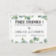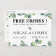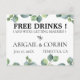 Rustikale Aquarell Silber Dollar Eukalyptus Blätter, "KOSTENLOSE GETRÄNKE!" lustige Save the Date Postkarte. Anpassen von Stil, Farbe und Schriftart des Textes.