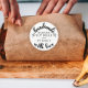 Rustikales Handmade mit Liebe Script Heart Baked Goods Classic Round Sticker. Passen Sie Ihr Produkt und Ihren Namen an, um das passende Etikett für Ihre kleinen Geschäftsanforderungen zu erstellen.