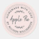 Rustikale, hausgemachte Backwaren Apfelkuchen-Aufkleber mit dem hausgemachten Text mit Liebe, Apfelkuchen und Ihrem Namen in schwarz handgeschriebener Chic-Schrift-Kalligrafie und moderne Typografie auf pastellrosa Hintergrund mit einer stilvollen Touch von Blattwerk. Fügen Sie dem Label einfach Ihren Namen und den Produktnamen hinzu. Exklusiv für Sie entworfen von Happy Dolphin Studio. Wenn Sie Hilfe oder passende Produkte benötigen, kontaktieren Sie uns bitte unter happydolphinstudio@outlook.com.