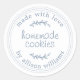 Rustikale und moderne hausgemachte Backwaren-Cookies, die mit dem Text aus Liebe, Zuhause gebackenen Cookies und Ihrem Namen in Vintag-blau-modernes Drehbuch auf weißem Hintergrund. Fügen Sie dem Label einfach Ihren Namen und den Produktnamen hinzu. Exklusiv für Sie entworfen von Happy Dolphin Studio. Wenn Sie Hilfe oder passende Produkte benötigen, kontaktieren Sie uns bitte unter happydolphinstudio@outlook.com.