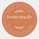 Rustikale, moderne und einfache hausgemachte Backwaren oder Konservenaufkleber mit hausgemachtem Text, mit Liebe und Ihrem Namen in weißer, stylischer Typografie auf verbranntem orangefarbenem Hintergrund. Fügen Sie einfach Ihren Namen zum Label hinzu. Schreiben Sie die Produktnamen auf den Aufklebern, wenn Ihre Produkte fertig sind. Exklusiv für Sie entworfen von Happy Dolphin Studio. Wenn Sie Hilfe oder passende Produkte benötigen, kontaktieren Sie uns bitte unter happydolphinstudio@outlook.com.
