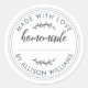 Rustikale, moderne und einfache hausgemachte Backwaren oder Konservenaufkleber mit hausgemachtem Text, mit Liebe und Ihrem Namen in schwarz-stylischer handgeschriebener Kalligraphie und Typografie auf weißem Hintergrund. Fügen Sie einfach Ihren Namen zum Label hinzu. Schreiben Sie die Produktnamen auf den Aufklebern, wenn Ihre Produkte fertig sind. Exklusiv für Sie von Happy Dolphin Studio entworfen!