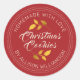 Rustikaler und moderner hausgemachter Aufkleber mit hausgemachtem Text mit Liebe, Weihnachtskeksen und Ihrem Namen in moderner Typografie auf festlichem, rotem Hintergrund mit einer stilvollen Touch goldgelben Blattes. Fügen Sie dem Label einfach Ihren Namen und den Produktnamen hinzu. Exklusiv für Sie entworfen von Happy Dolphin Studio. Wenn Sie Hilfe oder passende Produkte benötigen, kontaktieren Sie uns bitte unter happydolphinstudio@outlook.com.