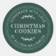 Rustikaler und moderner hausgemachter Aufkleber mit hausgemachtem Text mit Liebe, Weihnachtskeksen und Ihrem Namen in moderner Typografie auf dunkelgrünem Hintergrund. Fügen Sie dem Label einfach Ihren Namen und den Produktnamen hinzu. Exklusiv für Sie entworfen von Happy Dolphin Studio. Wenn Sie Hilfe oder passende Produkte benötigen, kontaktieren Sie uns bitte unter happydolphinstudio@outlook.com.