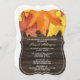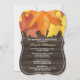 Vertikale Klammer Stil die Schnitt Süd Country-Thema Bridal Dusche Einladungen mit bunten Herbst Blätter über eine rustikale braune Holz Textur Abbildung.