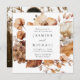 Diese rustikale, blumengeschmückte Hochzeitseinladung spiegelt das Wesen der romantischen Herbstsaison in warmen Tönen aus Elfenbein, Creme, Braun und Rostorange wider. Das faszinierende Design vermischt die Schönheit der Kalligraphie mit einem quadratischen Rahmen aus Herbstgeburten und zartem Blattwerk, das durch die Aquarellkunst zum Leben erweckt wird und einen wirklich faszinierenden Sake für Ihren besonderen Tag schafft. Personalisieren Sie die elegante Herbsthochzeit mit Ihren Namen und Hochzeitsdetails. Auf der Rückseite der Einladung zur Hochzeit im Herbst wird Ihr Foto mit viereckiger Verlobung angezeigt. Dieses Design koordiniert mit unserer rustikalen Hochzeitskollektion im Herbst.