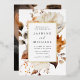 Rustikale Einladungen in die Hochzeit im Herbst, die Herbst-Blume in Aquarellfarben und Blätter in Elfenbein-, Creme-, Orange- und Brauntönen enthalten. Ihre Hochzeitsdetails werden durch eine Goldfolie gerahmt. Die Einladung kehrt sich um, um Ihr vollblutförmiges, vertikales Verlobung-Foto anzuzeigen. Die Einladungen zum Hochzeitsfolien sind perfekt für Hochzeiten im Herbst. Entworfen, um sich mit unserer rustikalen Herbstblumenhochzeit-Sammlung zu koordinieren.