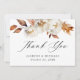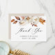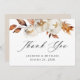 Rustikale Hochzeit mit Blumenbezug dank Ihrer Karte mit Wasserfarbenfall Blume und Blätter in den Schattierungen Elfenbein, Creme, Braun und Rostorange. Das elegante Herbst-Blumendesign wird durch "Danke" ergänzt, das in einer modernen Kalligraphie-Schrift gezeigt wird. Personalisieren Sie die Hochzeit Dankeschön Karte mit Ihren Namen, Hochzeitstag, und schreiben oder handschriftlich Nachricht. Die Blumenkarte für den Herbst ist perfekt für Ihre Hochzeit im Herbst oder besondere Veranstaltung. Entworfen, um sich mit unserer rustikalen Herbstblumenhochzeit-Sammlung zu koordinieren.