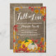 Rustikale Fall Bridal Dusche Einladung. Rustikaler Holzboden. Herbstdusche Einladung. Wasserfarben Pumpkin Floral Blume. Burlap Vintag Retro Background.
