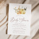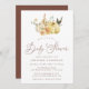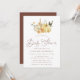 Rustikale Babydusche mit gemalten Kürbissen, umgeben von Laub und Blume in Orange-, Gold-, Braun-, Grün- und Rosttönen. Die Babyduscheinladung zum Herbst zeigt Ihre Duschdetails in brauner Schrift. Auf der Rückseite der Kürbis-Babydusche befindet sich ein solider brauner Hintergrund mit Platz für zusätzlichen Text.