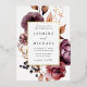 Feiern Sie Ihre Hochzeit im Herbst mit dieser Rustikalen Herbst Marsala Floral Foto Einladung. Blume und Blattwerk in Marsala, Bordeaux, lila, orange und braun gestalten Ihre Details mit einer schimmernden Goldfolie. Die Rückseite zeigt Ihr vollblütiges vertikales Verlobung-Foto und fügt eine persönliche Touch hinzu. Ideal für rustikale, boho- oder elegante Herbsthochzeiten, ist diese Einladung Teil unserer rustikalen Herbstfloralhochzeit.