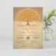 Rustikale Herbsthochzeit Einladung mit einem großen Eichenbaum mit Herbstfarbe und blinkenden Lichtern.