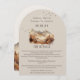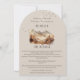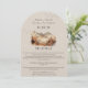 Aquarellmalerei von Bäumen, fliegenden Vögeln und Bergen im Hintergrund. Erdfarben eines Herbstes mit einer schönen Naturdarstellung. Vergewissern Sie sich, dass Ihr Gast alle Informationen über Ihren speziellen Tag mit dieser Arched Details Enclosure Card bekommt.