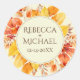Diese Aufkleber sind mit Aquarellfarben-Herbstlauben in Rot-, Gelb- und Orangetönen gestaltet. Personalisieren Sie sie mit den Namen der Braut und des Bräutigams und dem Hochzeitstag. Sie sind perfekt für rustikale und Herbstveranstaltungen und können auf alles platziert werden, von Einladungen bis zu Taschen und mehr.