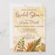 Bridal Dusche Einladung mit wasserfarbenen Herbstblättern, warmen Marmorboden und elegante Kalligraphie. Eine schöne Wahl, um die Braut in einem rustikalen oder saisonalen Design zu feiern.