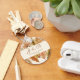 Stilvoller, runder Schlüsselanhänger mit Aquarellblättern und eleganten Initialen, in Erdtönen gestaltet. Eine bezaubernde Gastgeschenk Hochzeit oder Sake für rustikale und saisonale Feiern.