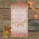 Dieses Design besteht aus einem Kranz von Herbstlauben und Beeren, der auf einem weichen, weißen Überhang auf Terracotta-Tonuntergrund platziert ist. Personalisierte All-In-One-Einladungen sind eine einzigartige Kombination aus einer schön gedruckten, maßgeschneiderten Einladung und einer leicht zu abreißenden perforierten UAWG-Postkarte. Und sie sind so einfach zu bedienen! Man falte einfach, dann Siegel die Rückklappe mit den drei beiliegenden Klarkleben, und Post. Und wenn Ihre Gäste Ihre persönliche Einladung erhalten, reißen sie einfach die perforierte RSVP Karte ab und lassen sie in der Mail an Sie zurück!