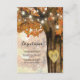 Herbstwaldland Hochzeitsrichtkarten mit einem rustikalen Fallbaum, der mit roten, orangefarbenen und gelben Blätter bedeckt ist, einem geschnitzten Herz mit Ihren Initialen, Streichelleuchten und einer modernen Hochzeitsvorlage.