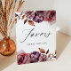 Rustikales Blumenschild mit den Blume der Wasserfarben und dem Laub in Marsala-, Bordeaux-, lila-, Braun- und Rostorange-Gastgeschenke Hochzeiten. Das elegante Herbstblumendesign wird durch eine moderne Kalligraphie-Schrift ergänzt. Personalisieren Sie das Zeichen der Gastgeschenke Hochzeiten mit Ihrem benutzerdefinierten Text. Das Blumenschild im Herbst eignet sich perfekt für Ihre Hochzeit im Herbst oder besondere Veranstaltung. Entworfen, um sich mit unserer rustikalen Herbstblumenhochzeit-Sammlung zu koordinieren.
