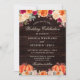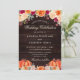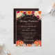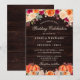 Rustikales Fall Orange Pumpkin Blumendesign mit orangefarbenen und roten Blume auf dunkelbraunem Holzboden
