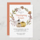 Eine hübsche, rustikale Aquarellmönche mit einer handgeschriebenen Einladung zum Abendessen, erdigen Kürbissen und grünem Kranz. Personalisieren Sie den Text mit Ihren Daten. Solide ockerfarbene Farbe auf der Rückseite der Einladung.