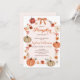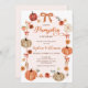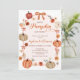 Feiern Sie Ihren kleinen Kürbis unterwegs mit dieser bezaubernden Babydusche-Einladung für ein Mädchen. Das Design besticht durch eine reizvolle Kürbisanordnung in sanftem Orange und gebrannter Orange, die mit zahlreichen süßen Bögen für einen Coquette- und Boho-Fall-Look betont wird. Eine vollkommene saisonale Einladung, um Ihr Baby willkommen zu heißen.