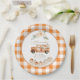 Rustikale Herbstpumpenwagen Karierte Babydusche Pappteller