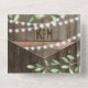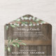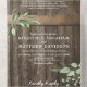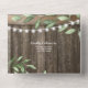 Eine 3 in 1 rustikal-schicke Hochzeitsfeier mit dreifacher Einladung mit einem rustikalen Holzfass-Hintergrund, binkelförmigen Lichtern, botanischem Grün, Aquarell, Monografie, Hochzeitsdetails, Hochzeitsempfang und einer uAwg-Postkarte für Ihre Gäste zum Abreißen und Zurücksenden.