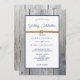 Weißes, verwittertes Holz, an der Anlegestelle gelegene Promenade mit nautischer Bräune, Marine und weißen Farben. Rustikales geknotetes Seil, das die Stärke einer miteinander verflochtenen Beziehung von zwei Leben mit einem gemeinsamen Zweck darstellt: LIEBE. Die gepflegten und modernen Schriftart verbinden sich zu einem einzigartigen Dekor.