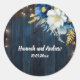 Rustikale Hochzeit aus blauem Holz Runder Aufkleber