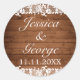 Hochzeitsticker mit Namen. Rustikaler Stil mit Holzvertäfelungen und weißer Spitzendekoration. In unserem Shop sind weitere Artikel in diesem Stil erhältlich. Sie können das Design weiter bearbeiten, Farben, Schriftart ändern und zusätzlichen Text hinzufügen, indem Sie auf den Link "Weiter anpassen" klicken.