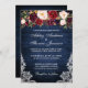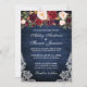 Rustic Blue Wood Lace Burgundy Watercolor Floral Wedding Einladung