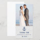 Ein marineblauer blauer Anker über einem weißlichen Holzboden wie Hintergrund. Die Rückseite der Karte ist leer - perfekt zum Schreiben einer persönlichen Dankeschön-Notiz! Ideal für eine rustikale / Vintage nautische Hochzeit! Bitte ersetzen Sie das Vorlagenbild vor dem Kauf durch ein eigenes Foto.
