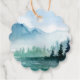 Gastgeschenk Hochzeit-Tags für eine rustikale Themenzeremonie oder eine Destination Zeremonie mit einem Aquarell von Bergen, Kiefern und Glühwürmchen über dem See. Enthält den Text, Liebe und Vielen Dank für Ihre Feier mit uns.