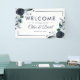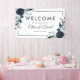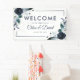 Elegantes Begrüßungsbanner mit weißem Hintergrund, rustikalen bohblauen Aquarellfarben und einer stilvollen Hochzeitsvorlage, die leicht zu personalisieren ist.