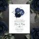 Trendy marineblaue und silberne Rose Hochzeitseinladung mit eleganter Typografie, die auf Ihre Veranstaltungsspezifikationen zugeschnitten ist.