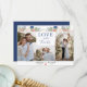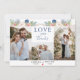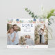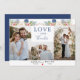 Rustikale Navy Blush Pink Bläschen Moderne Hochzeit Danke, Card. Wasserfarbenfrohe Blütenhochzeit Rosa Dank der Kartenfeatures mit Aquarellblütenrosa, blauen Eukalyptus-Blätter und schönen quadratischen Fotos. Personalisieren Sie die Textvorlage mit Ihren Hochzeitsdetails.