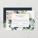 Rustikale Watercolor Navy Blush Gold Bloral Wedding RSVP Card. Bouquet von Navy Blue und Blush Pink Blume mit Goldakzent