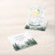 Eleganter, minimalistischer, grün gezapftes Hochzeitspapier-Untersetzer mit stilvollem, schicken Kalligraphie-Skript und Aquarellwaldlandschaft. +++++++++++++++++++++ Einfach mit Ihren Daten personalisieren! Geeignet für grüne Waldabenteuer Sommer oder Winter Hochzeiten in Urlaubsort.