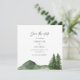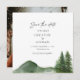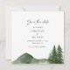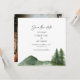 Ankündigen Sie Ihren besonderen Tag mit einer Touch der Schönheit der Natur mit unserem rustikalen Wald Berg Pine Wedding Retten the Date. Dieses Design ist ideal für Paare, die die herrliche Natur Liebe haben, und zeichnet sich durch den ruhigen Charme einer Waldlandschaft aus, die von majestätischen Kiefern, schroffen Bergen und erdigen Tönen geprägt ist, die die Stille des Waldes erwecken.