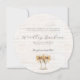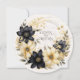 Eine erdige, rustikale Hochzeitseinladung mit einem cremefarbenen, weißen und schwarzen Blumenkranz auf hellen Holzkornhintergrund, als Hauptmerkmal dieses Designs, mit allen Details auf der Rückseite. Benutzen Sie das einfache Design-Tool, wenn Sie Schriftart oder Schriftart-Farben ändern möchten. Einzigartiges Rundformat.