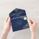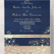 Set den Ton für Ihre romantische Feier mit dieser rustikalen marineblauen Hochzeitseinladung. Es wurde mit leuchtenden Saitenlichtern, zarten goldenen Blumenakzenten und eleganter Kalligraphie konzipiert und beinhaltet eine integrierte RSVP-Karte und einen koordinierenden Umschlag. Ideal für Herbst- oder Winterhochzeiten, Stallungen oder gemütliche Abend-Zeremonien.