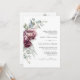 Eine romantische, blumengeschmückte Hochzeitseinladung, die das Wesen der rustikalen Eleganz mit ihrem gewölbten Bukett aus Pfannkuchen und Rose in Einklang bringt mit tiefburgund, Pflaume und staubigen Rosa und dem hintersten Eukalyptus-Grün. So schön für Herbst- oder Winterhochzeiten mit seinem reichen Farbschema. Die femininen botanischen Elemente Pop mit Stil und boho Charme. Personalisieren Sie die Textvorlage mit Ihren Hochzeitsdetails.