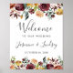 Rustikale Hochzeit im Herbst Burgund Floral Begrüßung Schildplakat