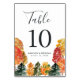Rustikale Hochzeit im Herbst des Herbstwaldes Tischnummer