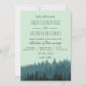 Rustikale Hochzeit in Blau und Grün. Das Hintergrundbild hat einen Kiefernwald unten in blau und grün. Das Bergbild ist auch auf der Rückseite der Karte enthalten. Sie können Text-, Schriftart- und Schriftart-Farben ändern. Diese Hochzeitseinladung passt zu einer Sammlung in meinem Laden.