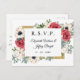 Rustikale elegante Rot und Gold Blütenweiße Hochzeit RSVP. Das Design zeichnet sich durch rote Blume, Anemone und Weiße Blume mit Grün Eleganter Rustikaler Goldrahmen aus.