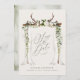 Rustikale Hochzeitsdächer laden Save the Date ein. Mit wunderschönem Aquarell, weißen Blumen, Geweih, Vorhängen, schieren Vorhängen und Schrifthandeschreiben. Diese moderne Hochzeit speichern das Datum ist sicher, den Stil für Ihre bevorstehende Ehe Set.