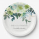 Rustikale Hochzeit mit blauem grünem Blumengestein Pappteller